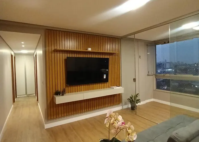 Lindo Apto 3 Quartos Com Ar Condicionado apartment offers self-catering options such as coffee and tea making facilities, a fridge, and kitchenware for guests to enjoy. Carlos Prates tube station is a stone's throw from the apartment.